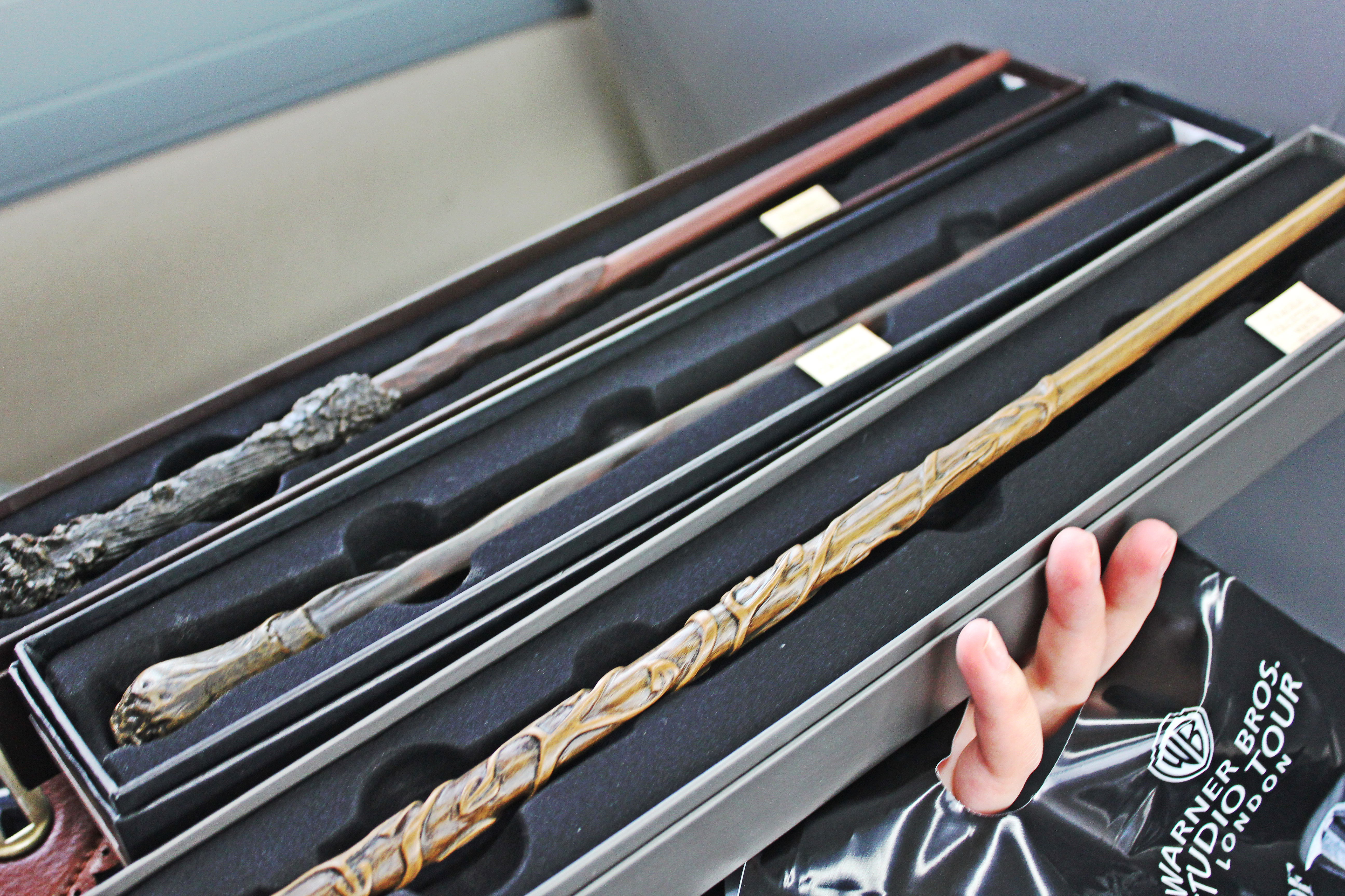 After being surrounded with magic for about 1.5 hours, we ended up at the gift shop at the end of the tour. And of course we had to get ourselves wands after visiting the studio! I got myself Hermione’s and coincidentally my friends got Harry’s and Ron’s.