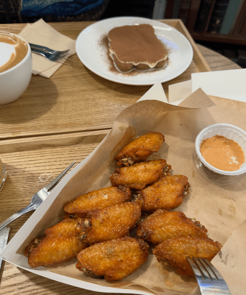 After the hair appointment we found this random cafe which surprisingly had very good tiramisu! My chicken wings did take awhile though 😅